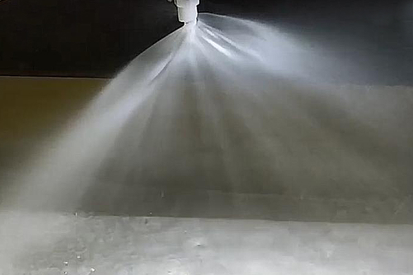2021.6.3 礦山石料破碎除塵噴霧工程,深圳市鑫龍環(huán)??萍加邢薰緡婌F除塵(超聲霧化除塵)是最簡便和最經(jīng)濟(jì)的除塵方式,并且除塵效果良好。噴霧除塵是將水霧化處理成許多高速運(yùn)動的密集細(xì)小水滴,是借助壓縮空氣沖擊共振腔產(chǎn)生的超聲波,利用超聲波將水霧處理成濃密的微細(xì)霧滴,這些微細(xì)霧滴在相對密閉的空間內(nèi)可以捕獲、凝聚微細(xì)粉塵,使得微細(xì)粉塵的黏性、濕度和比重顯著增加,進(jìn)而使得粉塵迅速沉降下來,逐漸實(shí)現(xiàn)除塵的目的。